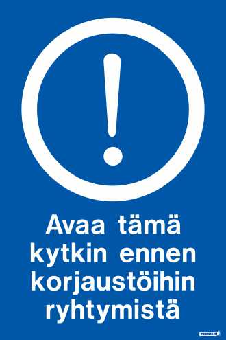 Avaa tämä kytkin ennen korjaustöihin ryhtymistä