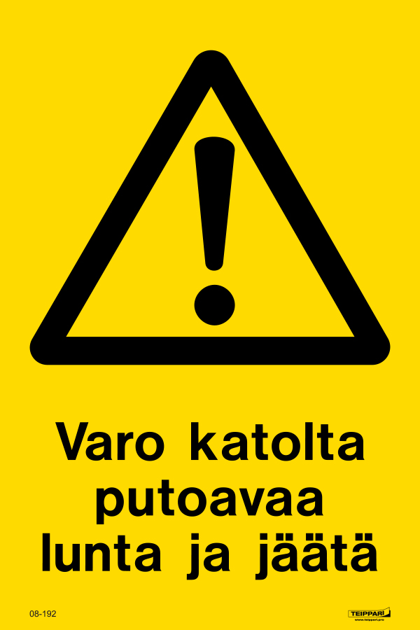 Varo katolta putoavaa lunta ja jäätä